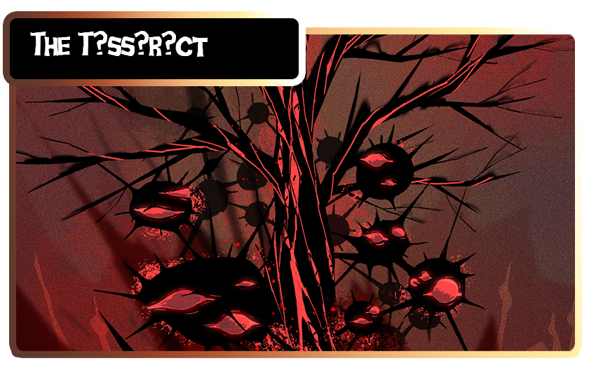 On floors ??? to 500 of the Labyrinth is the T?SS?R?CT, considered a containment bay or containment field isolated from the rest of the Labyrinth. It is said a long time ago, the Nightmare Tree lost several branches that fell deep into the Labyrinth that was absorbed and formed into the T?ss?r?ct. It is both protecting those within the cage, and preventing them from (formerly) leaving. Now that the T?ss?r?ct has been opened, it is less a cage and more a field where those formerly belonging to it freely come and go, and those who fall into it may find their way back to the surface, treating it like a small respite. The T?SS?R?CT itself may appear as a long corridor with a series of "containment bays", though each one seems to have completely different environments depending on what influence lies inside.