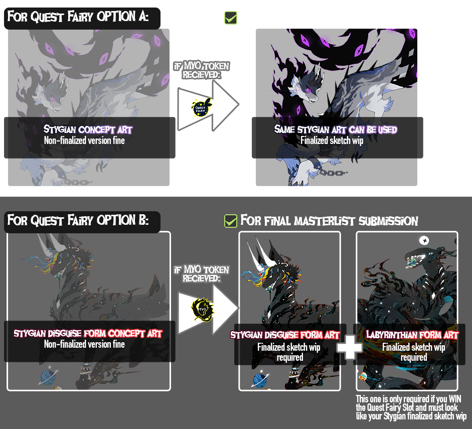 YOUR CONCEPT DESIGN MUST BE SUBMITTED (AND APPROVED) AS A D-004 QUEST HERE (submitted now, or at ANY point in time). Again both options just include Stygian CONCEPT art only at this point in time (final submissions for Labyrinthian require BOTH Stygian disguise CONCEPT and Labyrinthian based OFF concept forms)