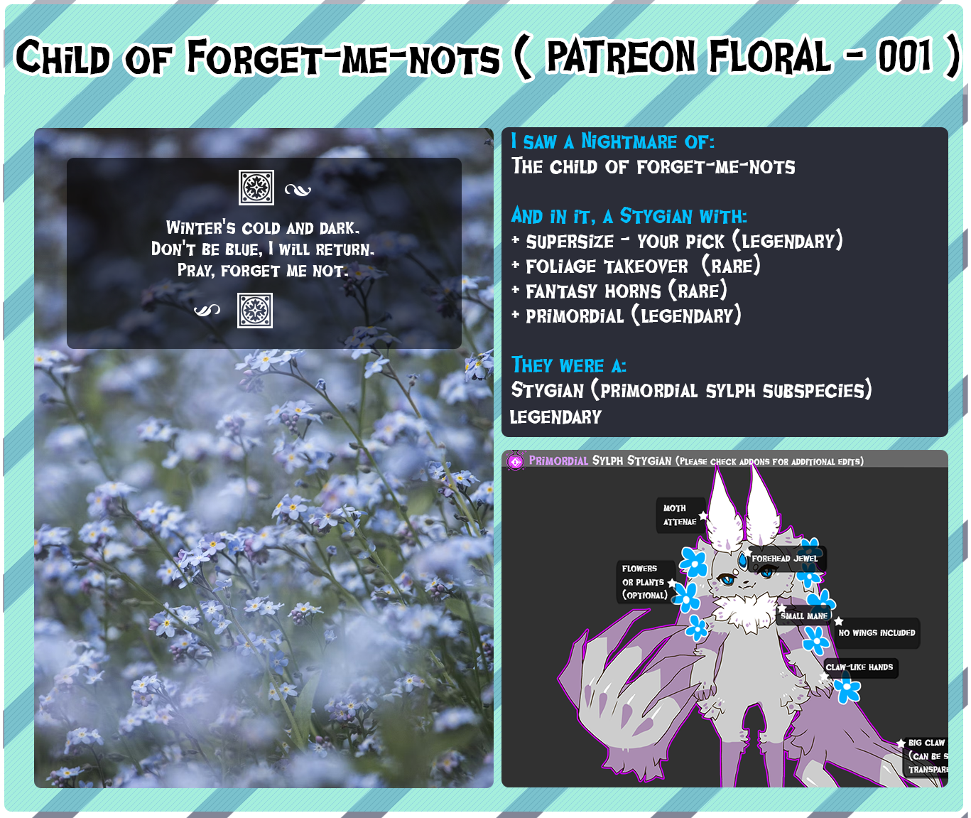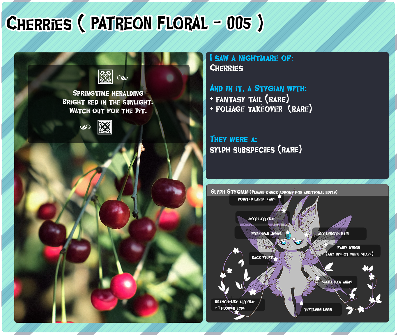 | You must NOT have an existing Patreon Stygianspirations pending of ANY rarity type that has NOT been submitted for approvals. |