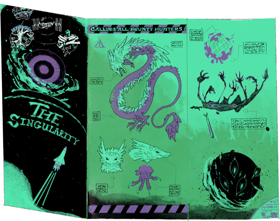 Sleeping in the space between the Dream-Online floors of the labyrinth, the CHILD OF Strategy returns the call from the Singularity. It embodies the incomplete, unfinished desires of Dream-Online, the entropic untamed elements, presence betraying a greater shadow underneath of its true form unable to be contained in the Nightmare Realm.